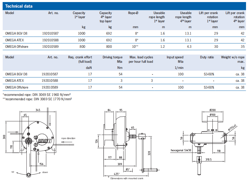 專為特殊挑戰而開發:OMEGA 手動鋼絲繩在 ATEX 等地區,絞車機功能安全完美(防爆)或離岸保護。歐米茄BGV D8和歐米茄離岸版本已為手動操作做好準備并通過外部電機驅動運行。